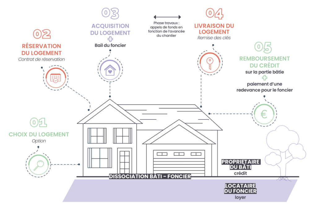 La propriété foncière est détenue par un OFS, un Organisme Foncier Solidaire. Les droits réels immobiliers sont cédés à un ménage contre paiement d’une redevance foncière, pour une durée de bail jusqu’à 99 ans. L’éligibilité au BRS se fait donc sous deux conditions : revenues des ménages et résidence principale.